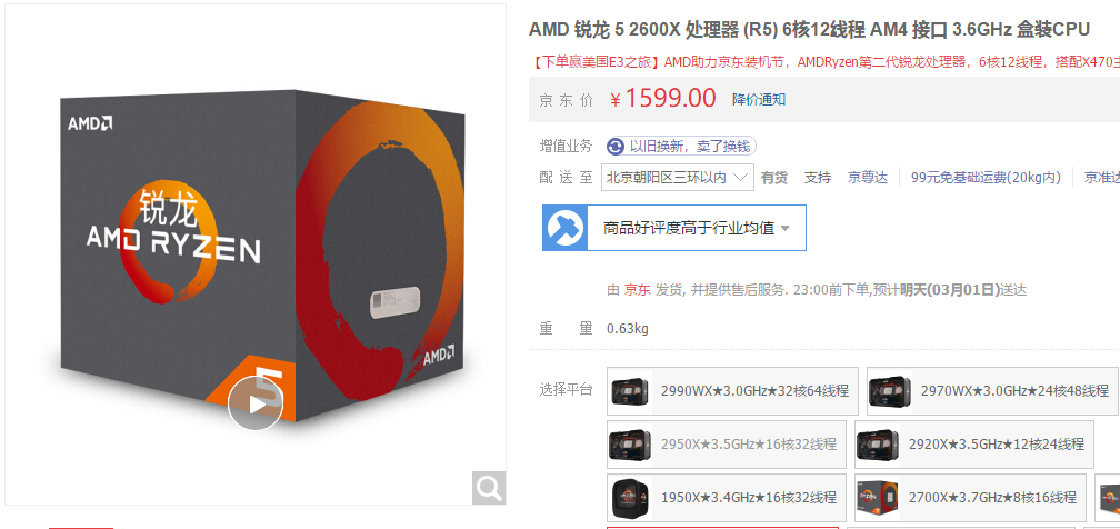 CPU: AMD Ryzen 2600 @3.6GHz内存:芝奇DDR4 8Gx2 @ 2666