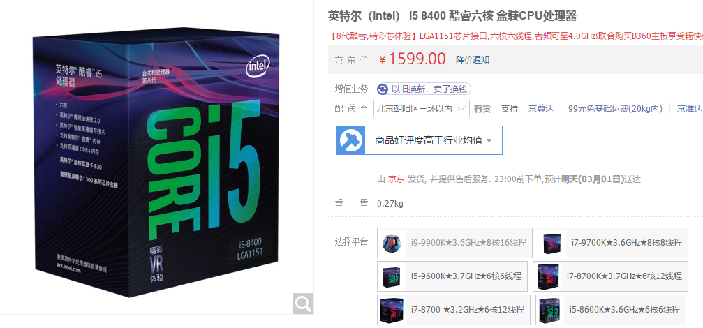 CPU: Intel i5-8400 @2.8GHz内存:金士顿DDR4 8Gx2 @2666