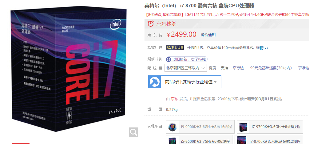 CPU: Intel i7-8700 @3.2GHz内存:威刚XMP DDR4 8Gx2 @2666