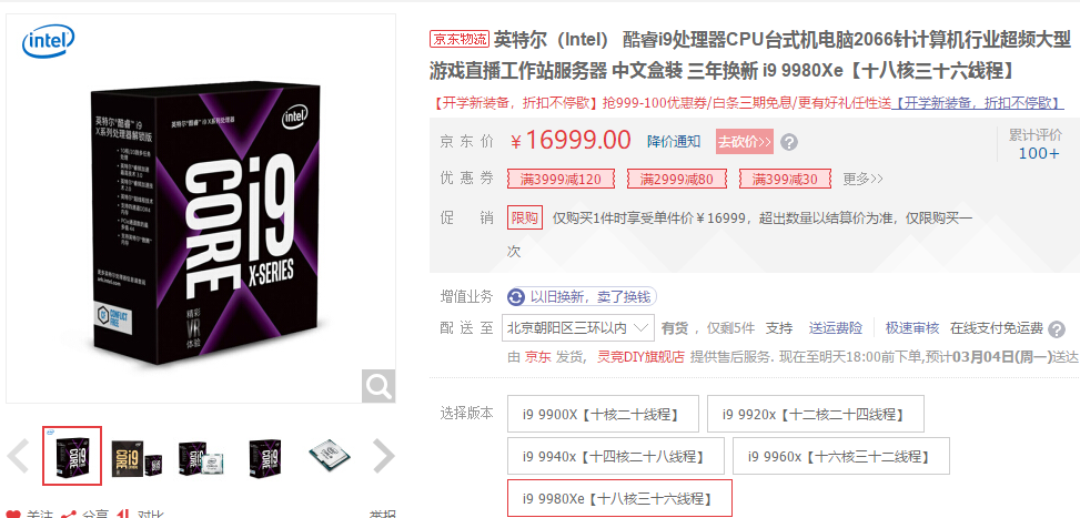 或者AMD的 线程撕裂者 2990wx@3.0GHz 32核64线程睿频4.2GHz。