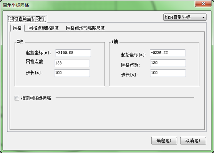 通过X轴与Y轴的起始坐标、网格点数和步长来设置直角坐标网格的范围。