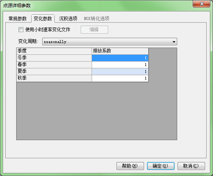 变化周期:用户可选择不同的变化周期,并按周期变化输入排放系数。污染物实际排放速率=排放速率*排放系数。软件提供了如下变化周期: