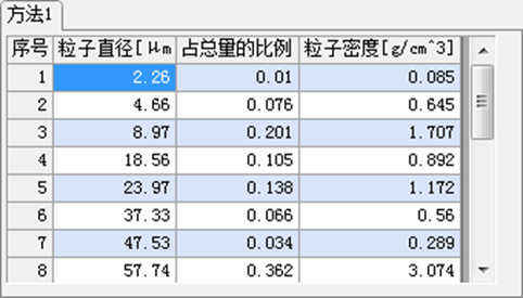 - 粒子密度:该分级粒子的粒子密度。