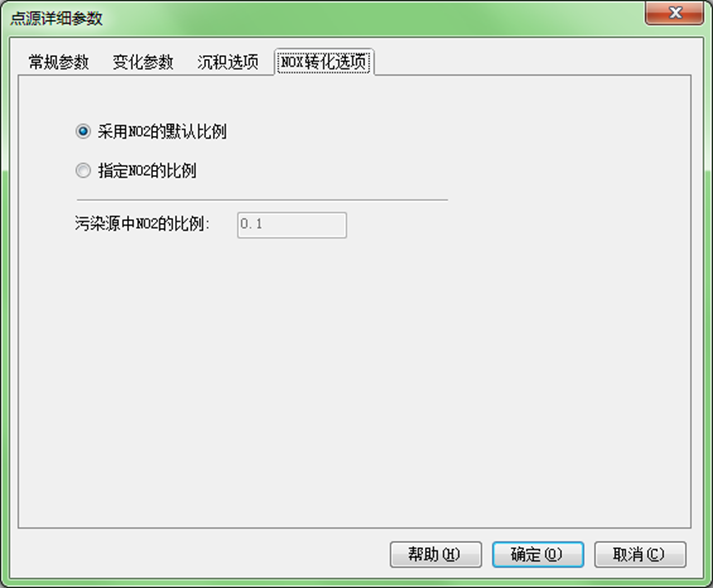 指定NO2比例:使用自定义的NO2/NOX比值,此时需要输入污染源的污染物中NO2/NOX的比值。