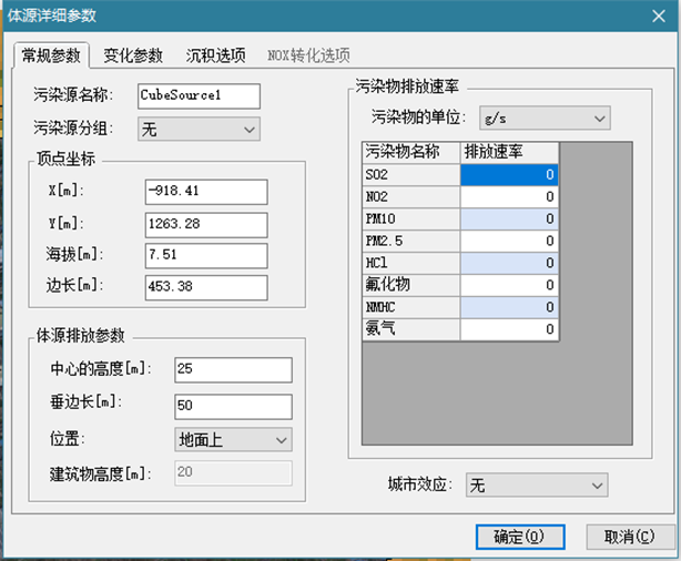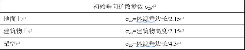 垂边长:体源的垂向高度。软件通过体源的垂向高度和体源相对于地面及建筑物的位置计算初始垂向扩散参数σzo。