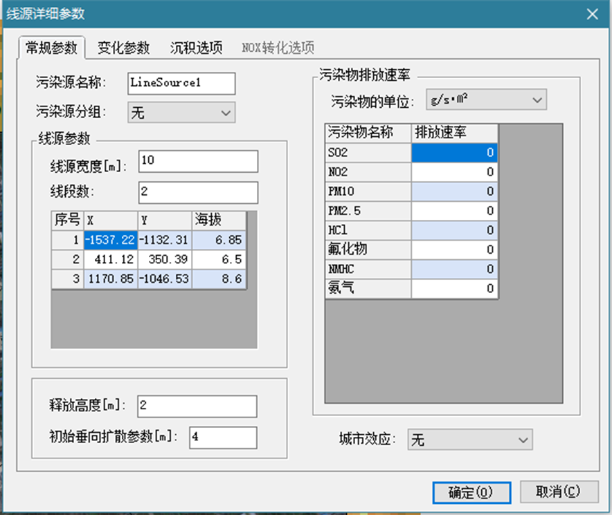 海拔高度:线源起点的海拔高度。用户使用地形数据时,海拔高度在运行AERMAP后得到。