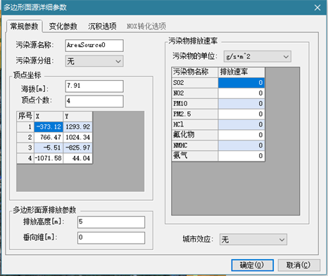 顶点坐标:面源在模型中分为三种类型:多边形面源、矩形面源和近圆形面源,不同类型的面源坐标不同: