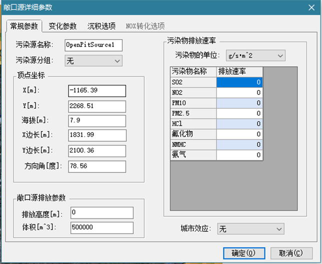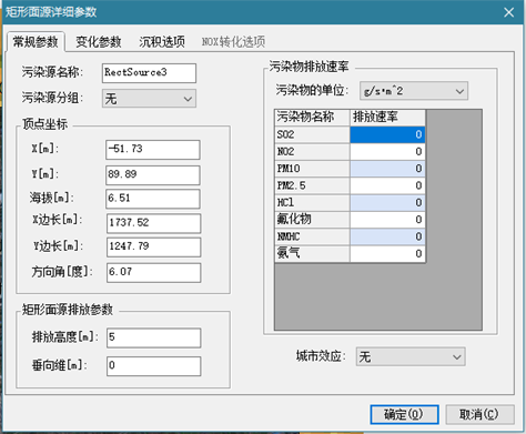 - 矩形面源:通过X方向、Y方向的长度以及方向角进行确定。