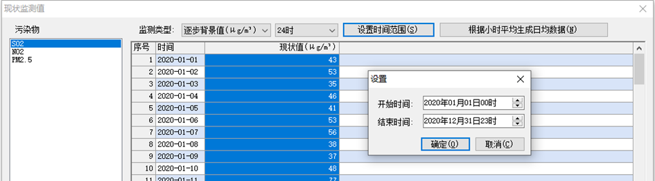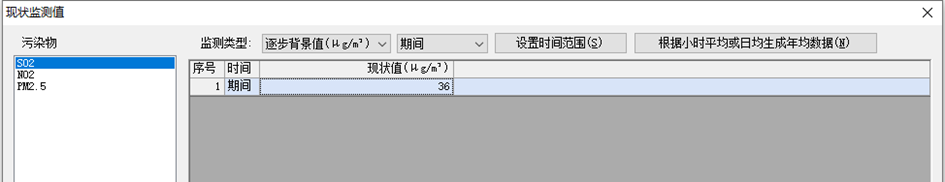 • 逐步背景值,叠加逐日和期间(年均)背景值(一般用于基本污染物的背景值设置)