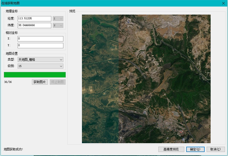 设置相关的参数后,点击“获取图片”,等待软件获取图片。图片获取成功后会在右侧预览界面显示,点击“高精度预览”可查看截取图片的效果。