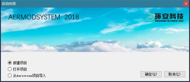 首先我们需要新建一个项目。从Windows开始菜单中找到AERMODSYSTEM 4.0软件,打开软件后会弹出“启动向导”对话框,从中选择“新建项目”并点击“确定”按钮。如下图所示: