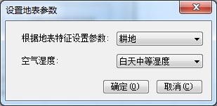3、点击确定按钮后回到“地表参数及气象选项”对话框。如下图所示: