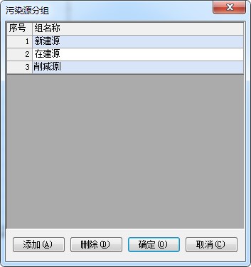 鼠标左键双击污染源分组,在弹出的对话框中设置污染源分组名称和分组数量,方便对污染源进行分类处理。污染源分组非必须设置,不设置分组也可以计算。