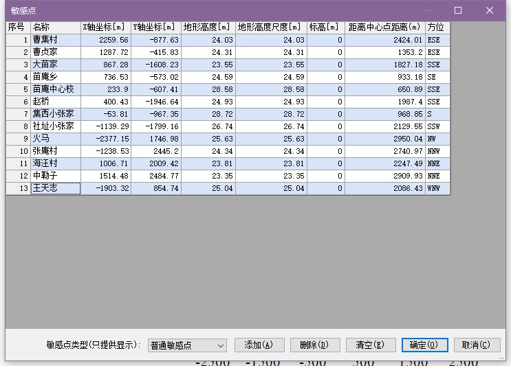 网格和关心点均为模型计算的接受点,AERMODSYSTEM 4.0计算完成后用户即可查看网格和关心点的计算结果,并可以利用这些点绘制出等值线图。