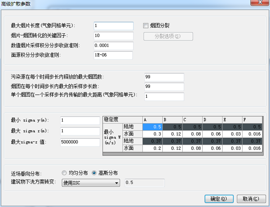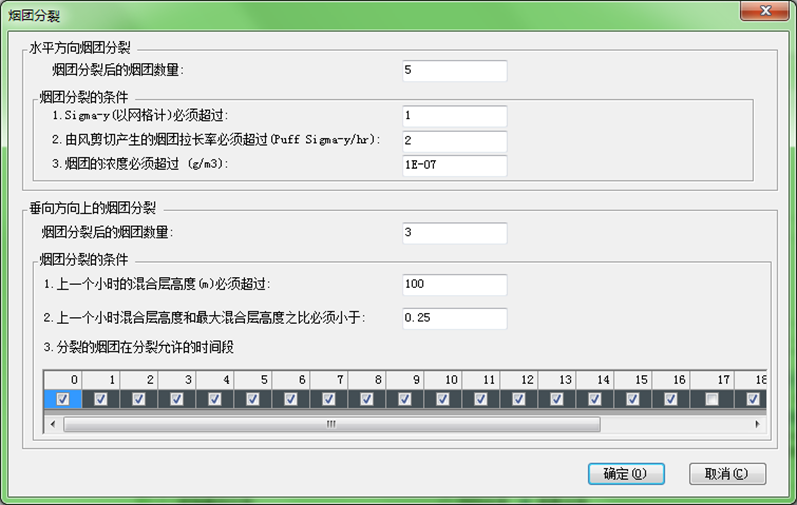 在此窗体中定义水平方向和垂向方向烟团分裂的条件。