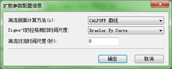 乡村区域使用PG扩散系数(MESOPUFF II曲线),在城市区域使用MP系数