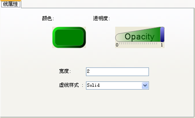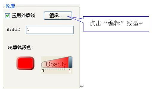 用户选择任一种样式,设置其颜色、透明度。通过勾选“使用外廓线”复选框来设置是否使用外廓线,并设置外廓线的宽度、颜色及透明度(可通过按下鼠标左键拖动透明度的标尺来实现)。