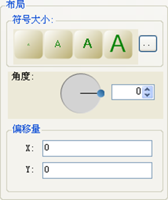 在布局编辑界面,用户可以设置所选符号类型的大小、旋转角度、偏移量。
