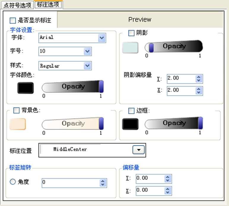 阴影:用户可以勾选“阴影”设置标注信息阴影的颜色、透明度及阴影偏移的程度。