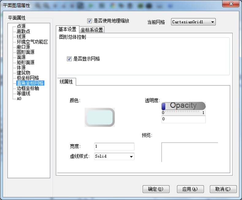 在“基本设置”选项卡中可以设置是否显示网格,并编辑网格线的线型、宽度、颜色及其透明度。