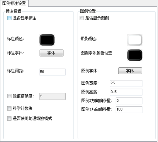 勾选“是否显示图例”复选框,显示等值线的图例,并设置图例数值的样式、图例的大小及位置。