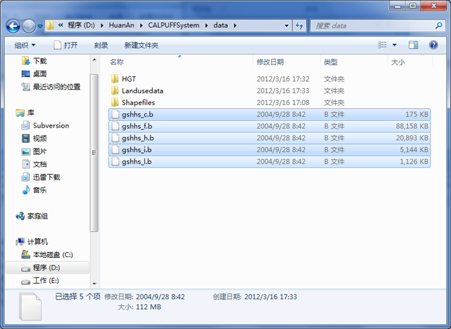CALPUFF官方网站http://www.src.com提供了90米分辨率的地形数据,环安科技已将其打包放置到附带光盘中。用户应把软件附带的地形数据拷贝到软件安装目录下的CALPUFFSYSTEM/DATA/HGT。