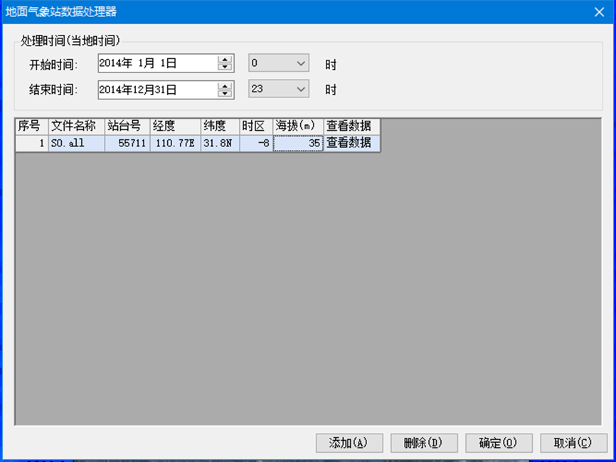 地面数据处理程序处理气象数据的时间区域,该时间区域必须在导入的多个气象数据的时间区间。