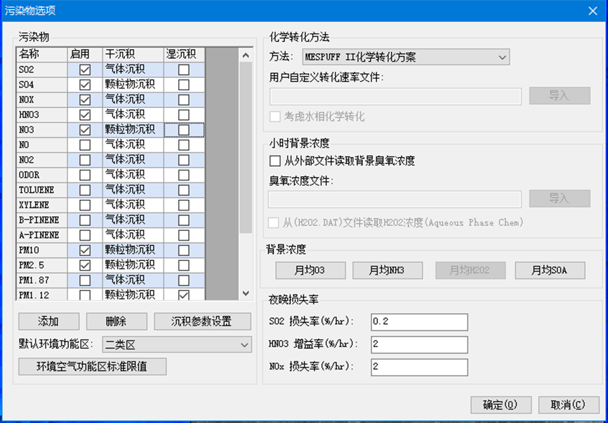 首先选择化学转化方法为MESPUFF –II Scheme,然后勾选PM10PM_{10}PM2.5PM_{2.5}